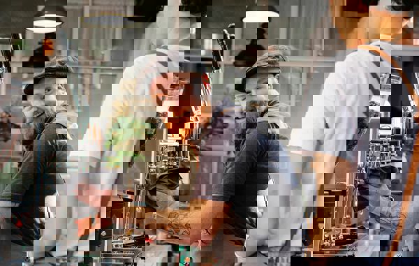 Place the filter basket into the bottom chamber and screw on the top part of the moka pot. -